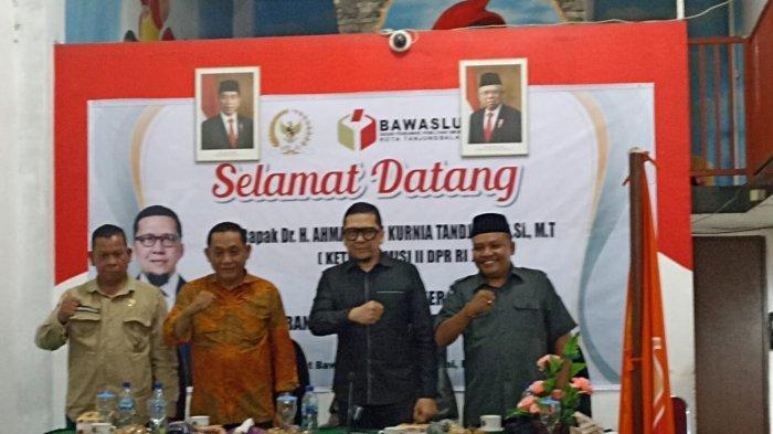 TRIBUN-MEDAN.com, TANJUNGBALAI - Personel Polres Tanjungbalai melaksanakan pengamanan (PAM) terbuka dan tertutup dalam Kunjungan Kerja (Kunker) dan monitoring Ketua Komisi II DPR RI Ahmad Doli Kurnia Tandjung di Sekretariat Bawaslu, Jalan Jenderal Sudirman, Datuk Bandar, Rabu (7/6/2023).