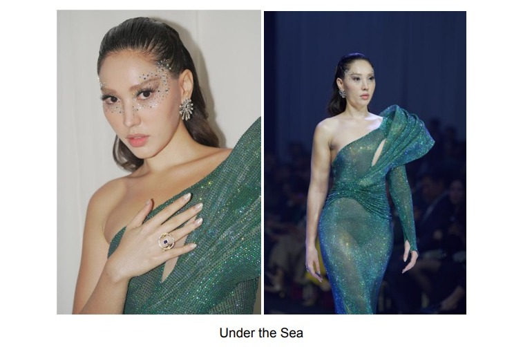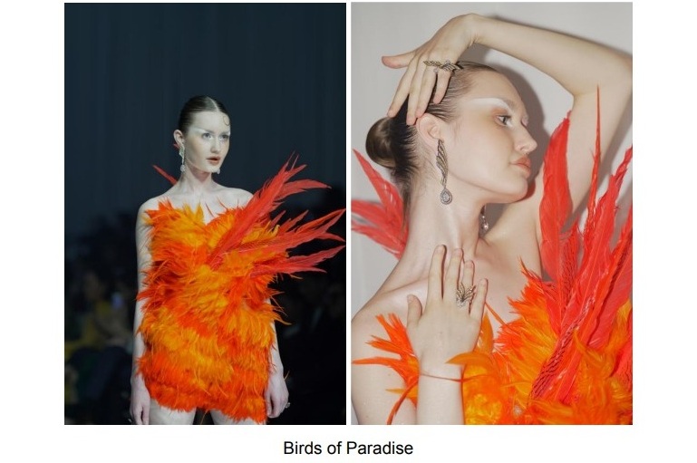 Frank & co. yang dikenal sebagai brand perhiasan berlian dengan desain elegan, classic, dan timeless, melakukan inovasi dengan membuat perhiasan berlian customized yang eksklusif dengan menyesuaikan desain busana karya Monica Ivena yang feminine, intricate, and whimsical. Perhiasan berlian dari Frank & co. yang dibuat khusus untuk fashion show ini memiliki desain classic modern with a twist.