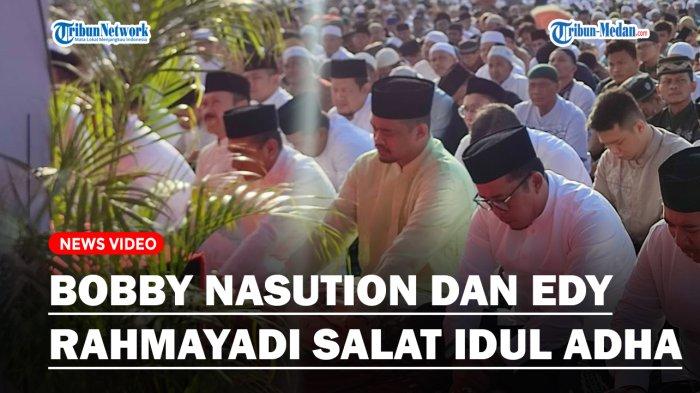 TRIBUN-MEDAN.COM, MEDAN - Wali Kota Medan Bobby Nasution dan Gubernur Sumatera Utara Edy Rahmayadi melaksanakan Salat Idul Adha di Lapangan Mabar Kecamatan Medan Deli, Kamis (29/6/2023).
