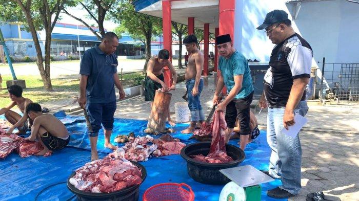 TRIBUN-MEDAN.com, MEDAN - Lembaga Pembinaan Khusus Anak (LPKA) Kelas I Medan melaksanakan penyembelihan hewan kurban pada perayaan Idul Adha 1444 H. Bertempat di halaman depan LPKA Medan, Kamis (29/06/2023).