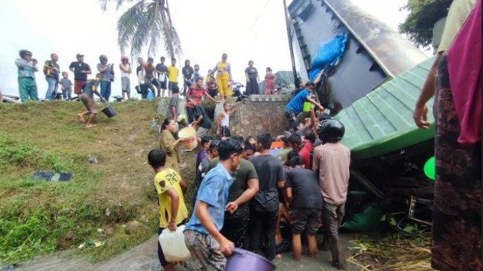 GAWAT! Warga Desa Paya Pasir Jarah Minyak Goreng dari Truk yang Terguling, Padahal Ada Polisi