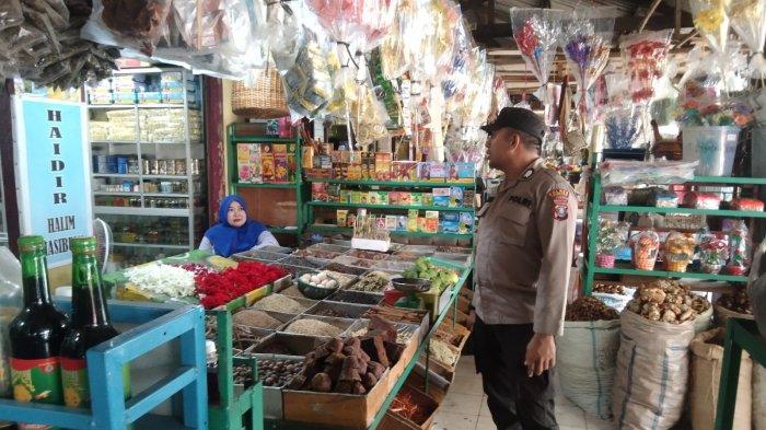 TRIBUN-MEDAN.com, TANJUNGBALAI - Personel Sat Binmas Polres Tanjungbalai Bripka Dedek Hermansyah melaksanakan sambang kepada para pemilik warung di Pajak Kawat dan Toko Kelontong, Rabu (12/7/2023).