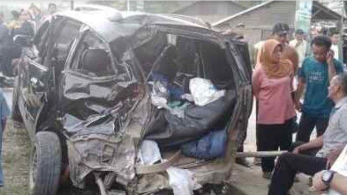 Mobil jenis Xenia berisi 8 orang ringsek setelah menerobos perlintasan kereta api tanpa palang pintu dan seorang pria tewas tabrak truk di Sergai.
