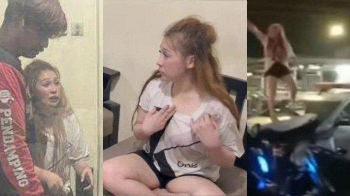 Pada video yang tersebar, wanita muda ini tampak melompat-lompat di mobil patroli.