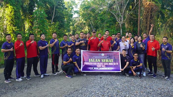 Meriahkan Hari Kemenkumham RI HDKD yang ke-78, Keluarga Besar Lembaga Pemasyarakatan Kelas IIA Rantauprapat menggelar Jalan Santai, Selasa (15/8/2023)