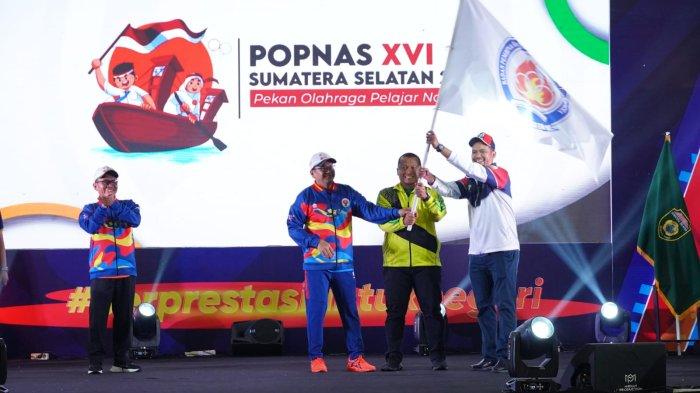 Sebelumnya, pada penutupan Popnas XVI/2023, Ketua Kontingen Tim Sumut di Popnas, M Maimun Basri menerima bendera pataka sebagai tuan ruman Popnas XVII 2025. Pataka diserahkan langsung Sekda Sumsel Ir Sapriono. (cr29/Tribun-Medan.com)