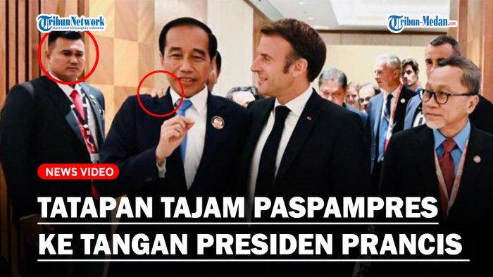 Paspamres Siaga Kala Presiden Prancis Rangkul dan Genggam Lengan Presiden Jokowi