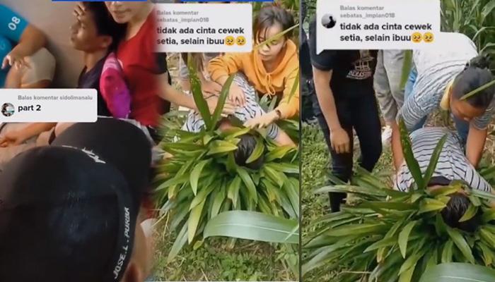 "Pria ini sampai jatuh pingsan ketika mendengar kabar bahwa kekasihnya akan segera menikah dengan pria lain. Beberapa orang yang diduga adalah keluarganya berusaha menenangkan pria tersebut."