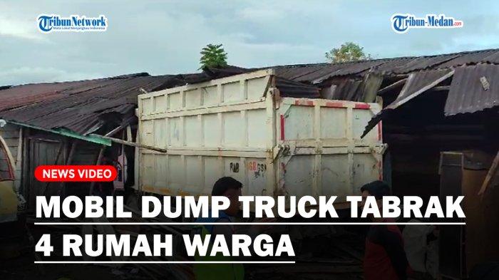 Menghindari Tabrakan, Mobil Dump Truck Tabrak 4 Rumah Warga di Sidikalang