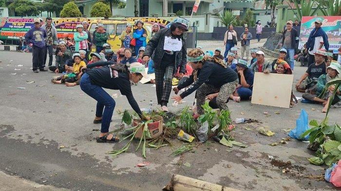 Masyarakat Desa Pandiangan Gelar Aksi Pantomim saat Berunjuk Rasa di Kantor DPRD Dairi