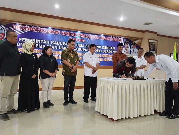 Kabupaten Deliserdang menjadi kabupaten pertama di Sumut yang sudah melakukan penandatanganan Naskah Perjanjian Hibah Daerah (NPHD) untuk Pilkada 2024
