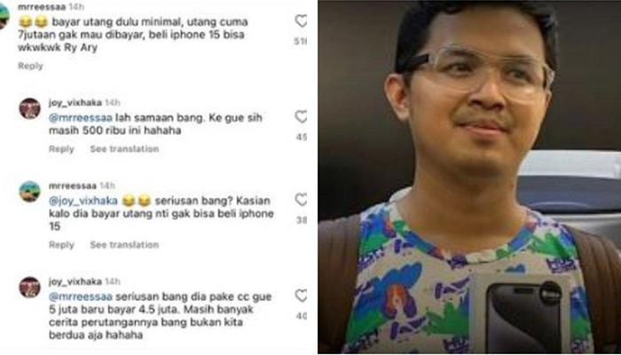 "Bayar utang dulu minimal, utang Cuma 7 jutaan enggak mau dibayar, beli iphone 15 bisa wkwkwk Ry Ary," tulis @mrreessaa.