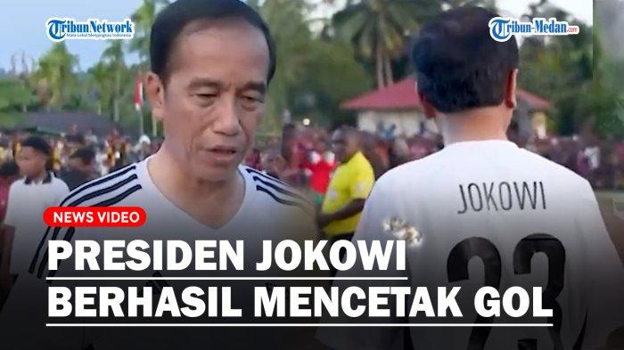 Dalam suatu momen, Presiden Jokowi berhasil mencetak gol ke gawang lawan.