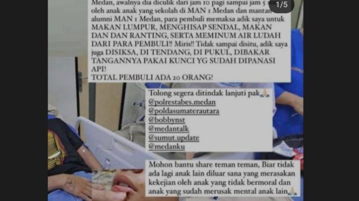 Satu Siswa di Madrasah Aliyah Negeri (MAN)1 Kota Medan menjadi korban pembullyan dan penyiksaan oleh teman-temannya viral di sosial media.
