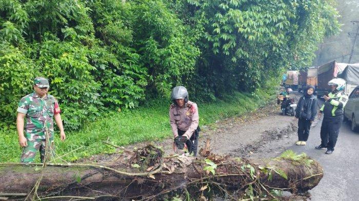 "Langsung kita bersihkan tadi bersama personil Koramil Berastagi, material pohon tumbang yang melintang di badan jalan", kata Kapolsek.