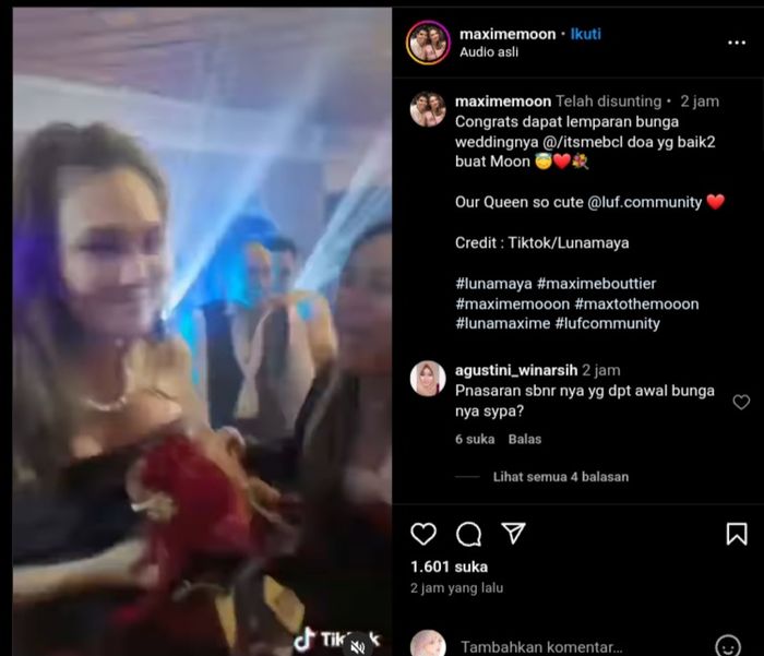 "Itu bunganya jatuh ke yg lain, tapi disodor2in maksa ke luna ya," komentar @eli***.