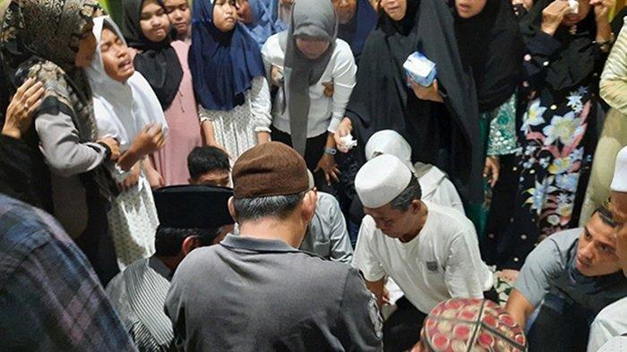 Pemakaman tersebut dihadiri oleh keluarga, kerabat, dan teman kuliah korban, menciptakan suasana haru.