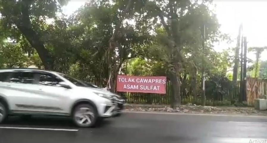 Spanduk berlatar merah dengan tulisan tolak Cawapres asam sulfat mejeng di beberapa titik di Kota Medan.