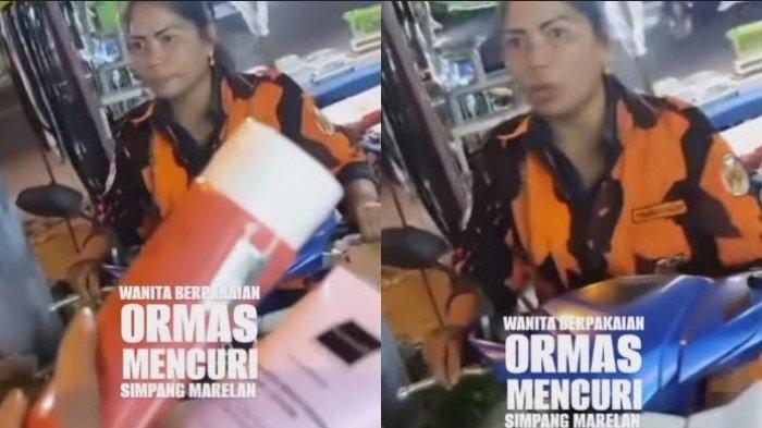 “Seorang wanita yang mengenakan baju Ormas diduga melakukan pencurian di salah satu minimarket Di Simpang Marelan,” isi narasi dalam keterangan unggahan itu.