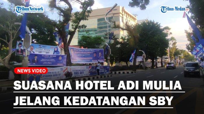 TRIBUN-MEDAN.com, MEDAN - Suasana di jalan Diponegoro, tepatnya di depan Hotel Adi Mulia, Kota Medan dipenuhi baliho ucapan selamat datang jelang kedatangan mantan presiden ke 6, Susilo Bambang Yudhoyono (SBY)dan juga Ketua Umum Partai Demokrat Agus Harimurti Yudhoyo (AHY) di Medan, Selasa (26/12/2023).