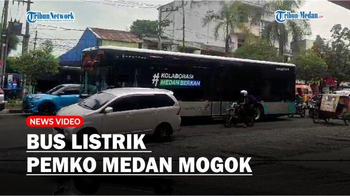 Amatan Tribun Medan, bus listrik ini mogok di pertengahan persimpangan Jalan Jamin Ginting-Pattimura.