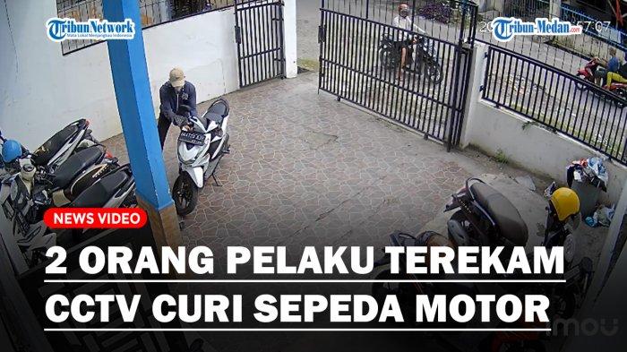 TRIBUN-MEDAN.com, MEDAN - Dua orang pria terekam kamera pengawas CCTV, mencuri satu unit sepeda motor yang sedang terparkir.