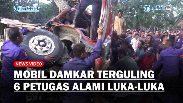 Mobil Damkar Asahan Terguling, Enam Petugas Alami Luka-luka, 1 Terjepit Bodi Mobil