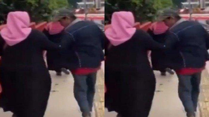 Video yang tersebar di mana seorang pria yang mengenakan topi dan berjaket memalak seorang ibu-ibu wisatawan.