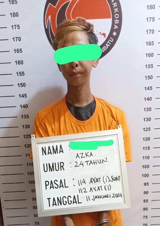 Satres Narkoba Polres Labuhanbatu menangkap pria berinisial Azka (24) warga Jalan Asahan Kelurahan Sinio Bangun Malela Kabupaten Simalungun di Kampung