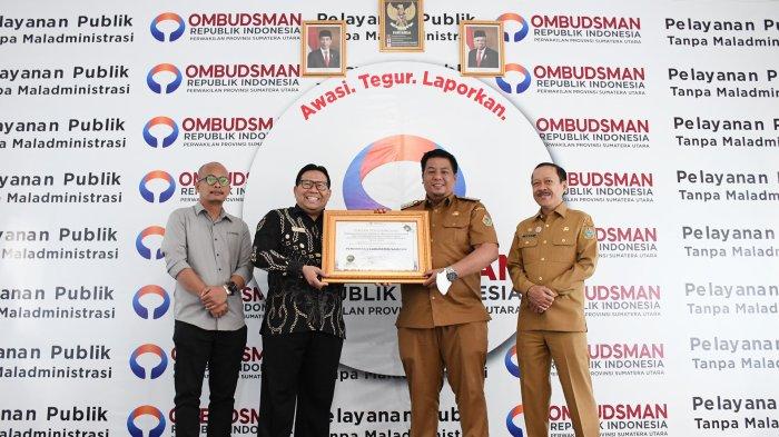 TRIBUN-MEDAN.com, MEDAN - Ombudsman Republik Indonesia Perwakilan Provinsi Sumatera Utara memberikan Piagam Penghargaan Penilaian Kepatuhan Penyelenggaraan Pelayanan Publik (Opini Pengawasan Penyelenggaraan Pelayanan Publik) Tahun 2023 kepada pemerintah Kabupaten Samosir.
