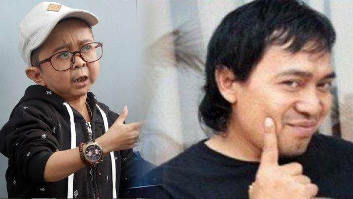 Pelawak yang lekat dengan jargon 'Spontan Uhuy' itu yang mengenakan kemeja biru itu memiringkan kepalanya ke arah kiri, matanya melotot, dan mulut sedikit terbuka.