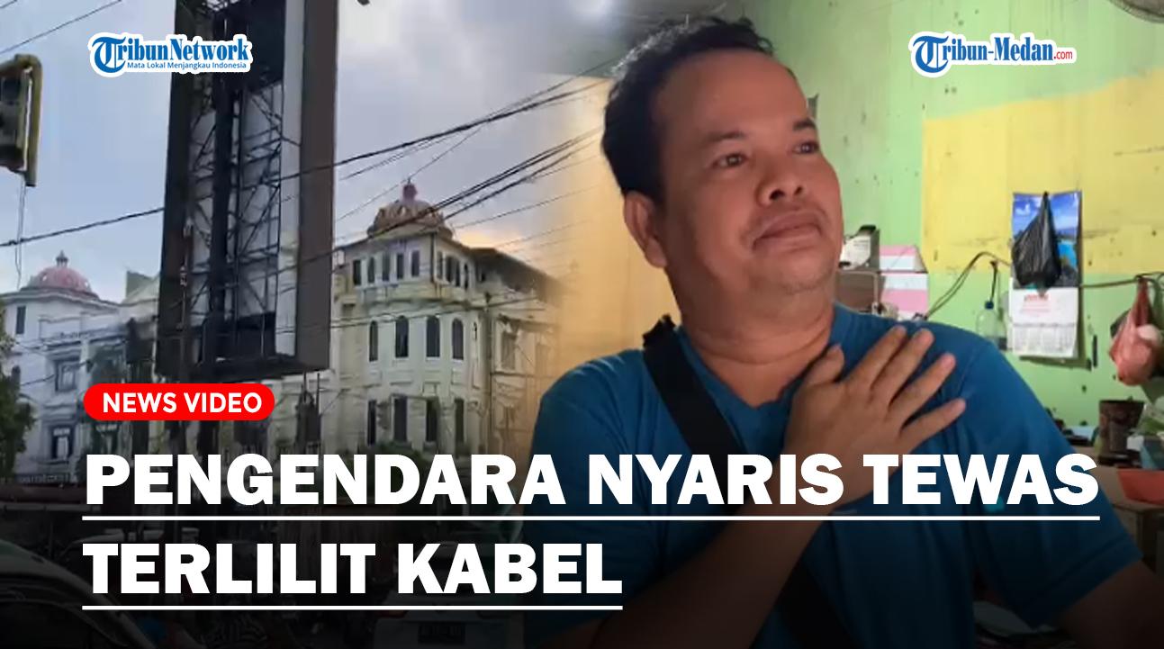TRIBUN-MEDAN.com, MEDAN - Seorang pengendara bernama Luthfi Simanjuntak, nyaris tewas usai kabel yang menjuntai melilit lehernya.