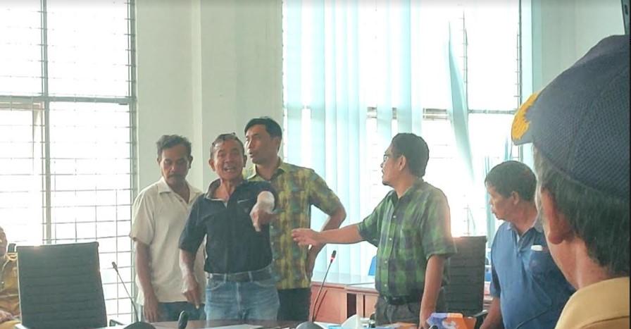 Salah satu perwakilan warga, tampak menggebrak meja di ruang rapat yang membuat suasana ruang rapat langsung riuh.