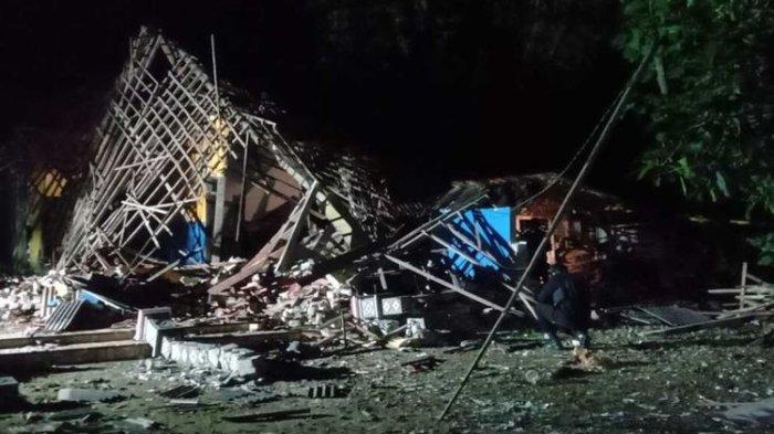 TRIBUN-MEDAN.COM - Ledakan petasan menyebabkan satu rumah ambruk di Desa Sembilangan, Kecamatan Bangkalan, Kabupaten Bangkalan, Jawa Timur, Jumat (19/4/2024).