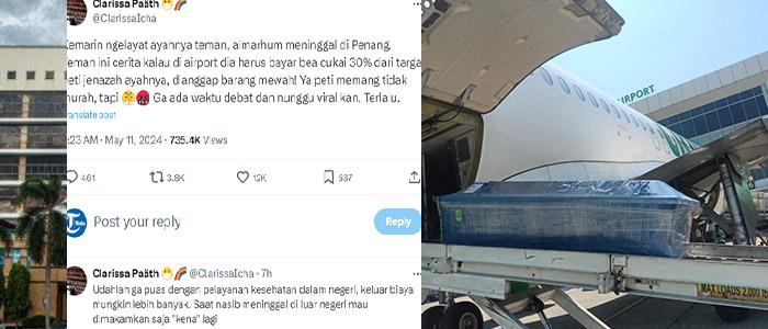 Dalam cuitannya, pengguna akun tersebt mengungkapkan bahwa pengiriman peti jenazah ayah dari temannya dari Penang, Malaysia yang diduga ditarik pajak sebesar 30 persen oleh pihak Bea Cukai.