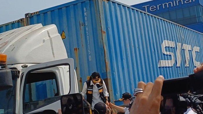Setelah itu, ketiganya mengecek langsung pengeluaran dua truk kontrainer yang membawa barang impor yang sempat tertahan.