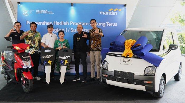 Guna meningkatkan transaksi nasabah, Bank Mandiri menggelar program untung terus kepada nasabah di seluruh Indonesia dengan hadiah berupa E-voucher, Motor Listrik dan Mobil Listrik. Di Region I / Sumatera 1, Bank Mandiri telah menyerahkan hadiah 1 unit Mobil Listrik Wuling dan 1 unit Motor Listrik Volta.
