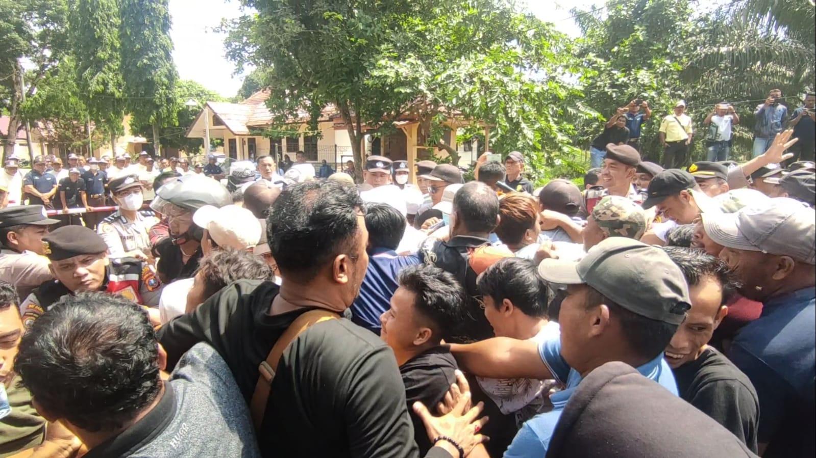 Ricuh aksi unjuk rasa warga dua kecamatan di Asahan menuntut PTPN Empat Regional I Asahan tidak kembali meracun sapi-sapi milik warga yang mencari makan di perkebunan sawit, Selasa (4/6/2024)