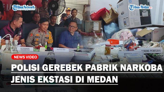 Direktorat tindak pidana narkoba Bareskrim Polri, dibantu Polda Sumut dan Bea Cukai menggerebek pabrik sekaligus laboratorium pembuatan narkoba