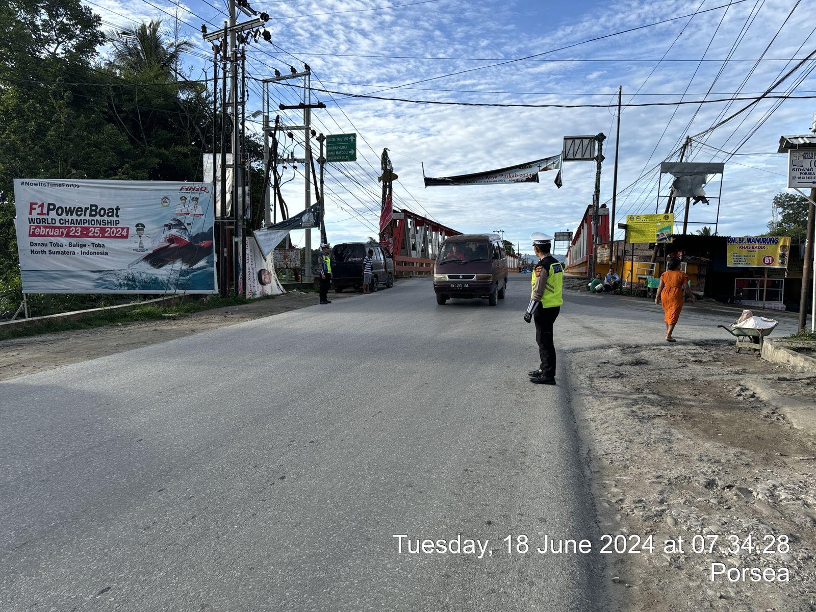 TRIBUN-MEDAN.com, TOBA - Satlantas Polres Toba melaksanakan tugas pokok fungsinya dalam melaksanakan kegiatan pengaturan, penjagaan, pengawalan dan patroli serta pelayanan masyarakat agar tetap maksimal untuk memberikan rasa aman dan nyaman kepada semua pengguna jalan, tepatnya di Simpang Lumban Datu, Porsea Kabupaten Toba Provinsi Sumatera Utara, Selasa (18/6/2024) sekira pukul 07.00 WIB pagi hari.