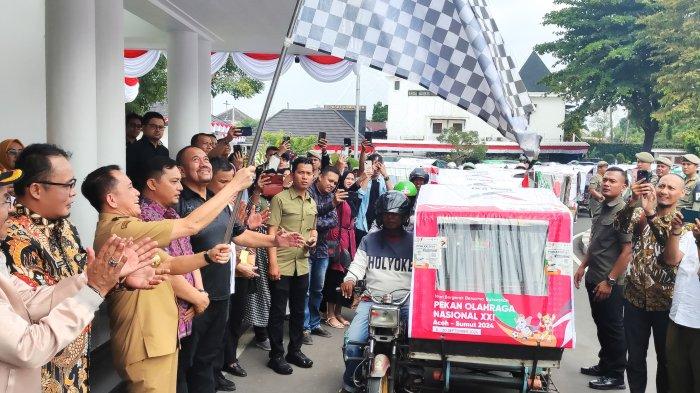 TRIBUN-MEDAN.COM,MEDAN- Pj Gubernur Sumatera Utara Agus Fatoni dan Wakil Wali Kota Medan Bobby Nasution melepas 550 becak motor sebagai duta Pekan Olahraga Nasional (PON) Aceh-Sumut 2024.