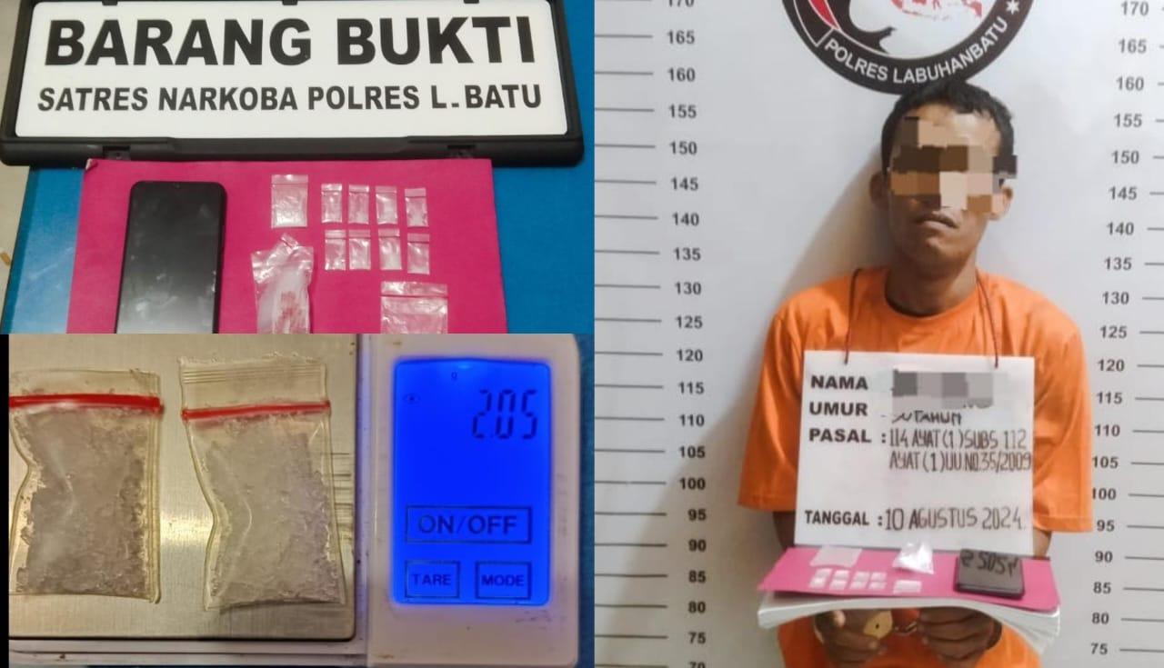Dipimpin oleh IPDA Rahmadhan Hilal, Tim Opsnal Satres Narkoba berhasil menangkap seorang pria berinisial TW alias Bowo (30), warga Kelurahan Silandorung, Kecamatan Rantau Utara, Kabupaten Labuhanbatu.