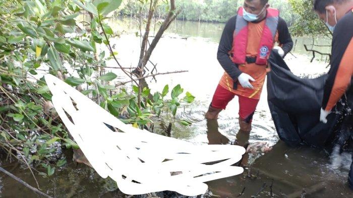 Jenazah korban ditemukan di aliran sunga tepat dibawah pohon mangrove.