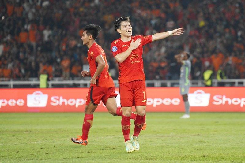 Bola liar hasil umpan Maciej Gajos berhasil dituntaskan dengan baik oleh Ryo Matsumura, bola hasil sepakannya melaju mulus ke gawang Persis.