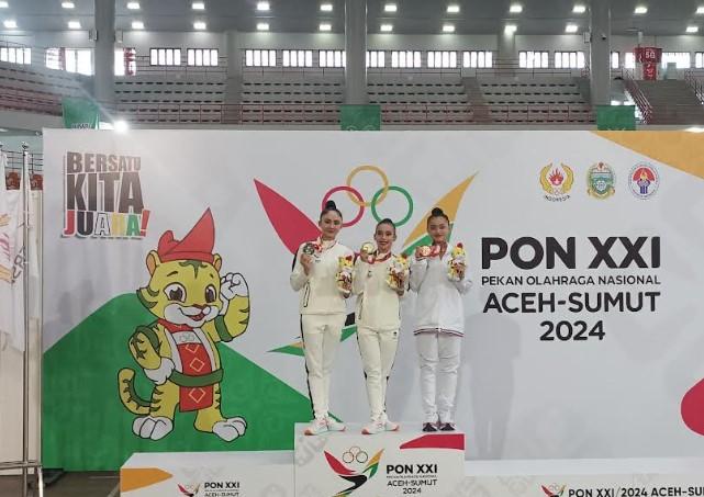 Kontingen Lampung berhasil rebut dua medali sekaligus di pertandingan Senam Ritmik nomor All Round Perorangan di PON 2024.