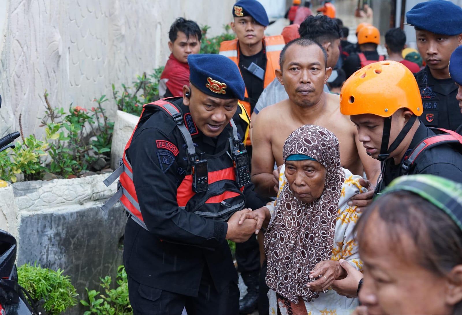 Dansat Brimob Sumut Pimpin Evakuasi Lansia di Tengah Banjir Medan