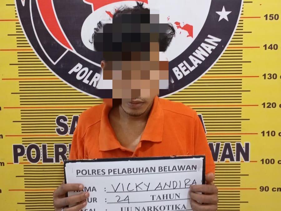 Saat dilakukan penggeledahan, petugas menemukan barang bukti tersebut dalam penguasaan tersangka. Dalam proses interogasi awal, Vicky mengakui perbuatannya sebagai pengedar narkoba.