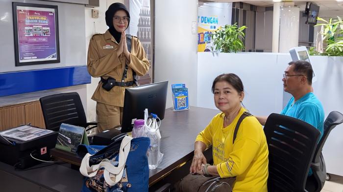 Pelanggan menyambut antusias aksi para petugas berbusana pejuang, banyak di antaranya yang mengabadikan momen tersebut