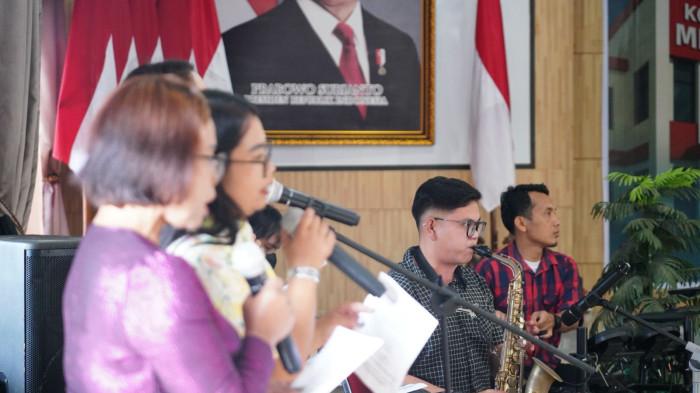 Acara kebaktian diakhiri dengan doa bersama dan nyanyian pujian yang menguatkan semangat kebersamaan dan rasa syukur kepada Tuhan.