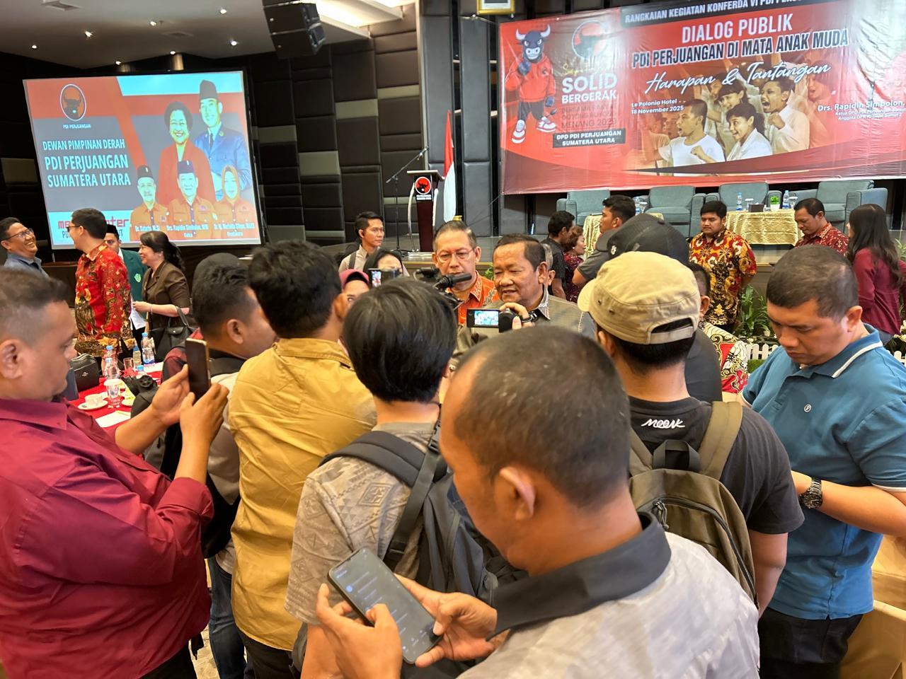 Di hadapan ratusan anak muda di Hotel Le Polonia Medan, Ketua DPD PDIP Sumut Drs Rapidin Simbolon MM lewat dialog Publik bertajuk “PDI Perjuangan di Mata Anak Muda, Harapan dan Tantangan” di Ballroom Hotel Polonia Medan, Selasa (18/11/2025) menegaskan bahwa generasi Z harus dipersiapkan menjadi pemimpin yang lahir dari proses bukan dari pemaksaan atau karbitan politik.